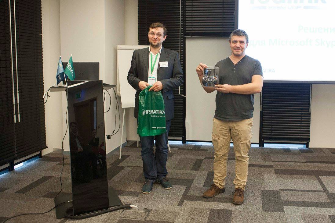 На семинаре присутствовали представители 10-ти московских компаний. В завершении презентаций прошла демонстрация оборудования и свободное обсуждение поднятых вопросов во время ланча. Кроме того, определились победители в розыгрыше призов: Егор Говорков ("Телест") получил IP-телефон Yealink SIP-T40P, а Евгений Горбарский ("Джаз Телеком") — джойстик от Logitech. Правда, победители тут же решили обменяться подарками. Другие активные участники семинара получили в качестве сувениров маусфоны SkypeMate VM-01S.