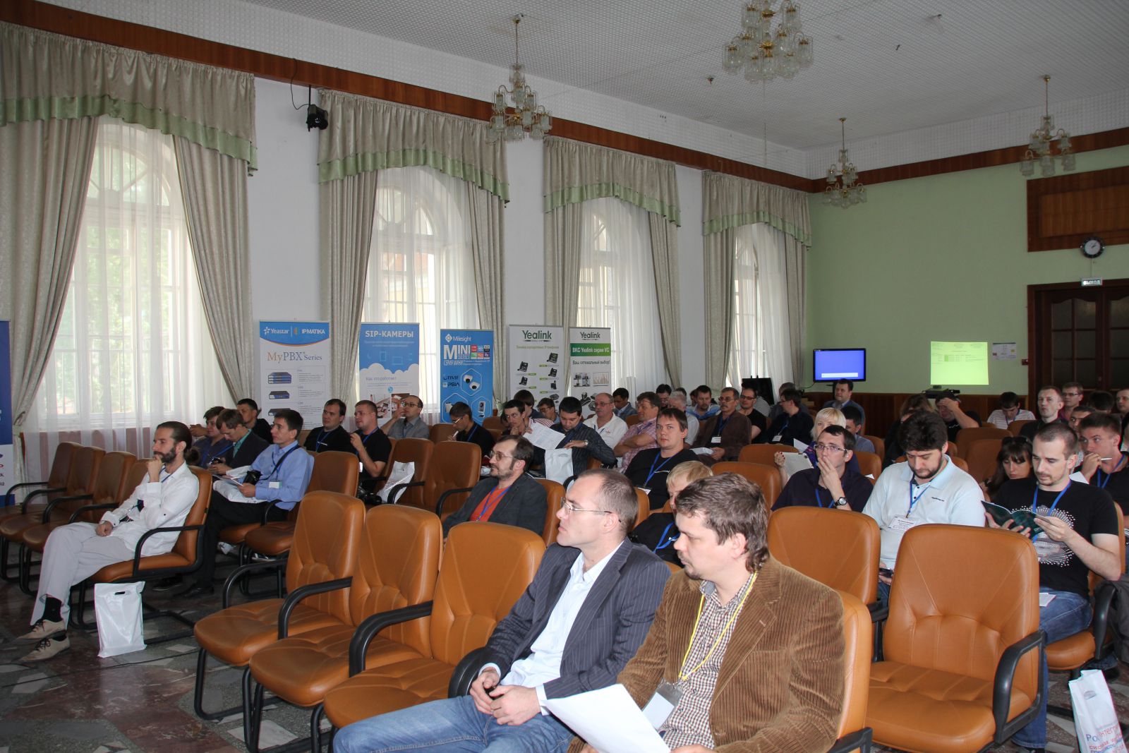 Так, Леонид Корытин, менеджер по системам видео-конференц-связи рассказал про аппаратные системы ВКС от Yealink, а Владимир Бабаев, инженер по оборудованию для видеонаблюдения, провел презентацию "Доступные решения All Over SIP и преимущества объединенных офисных коммуникаций".