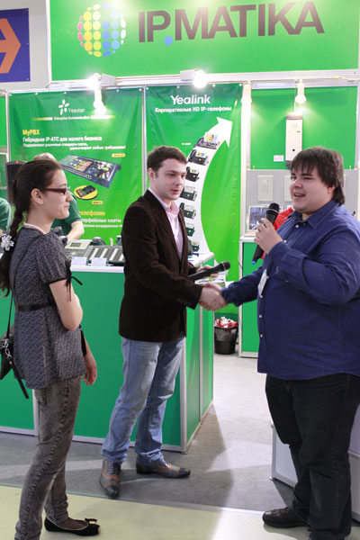 В дни выставки ООО "Зебра Телеком", совместно с ООО "АйПиМатика" и ООО "Телефонные Системы", провело ряд занимательных и познавательных конкурсов. Призами для победителей были USB-телефоны SkypeMate, предоставленные ООО "АйПиМатика".