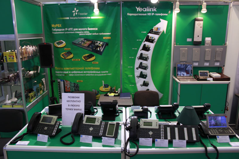 Кроме того, на стенде была представлена новая продукция - это новый телефон Yealink SIP-T38G с цветным дисплеем и гигабитным сетевым интерфейсом, IP АТС Yeastar MyPBX 1600 V4, MyPBX 1U и MyPBX E1, GSM-VoIP шлюз Yeastar NeoGate, а также SIP-домофоны израильской компании ITS Telecom.