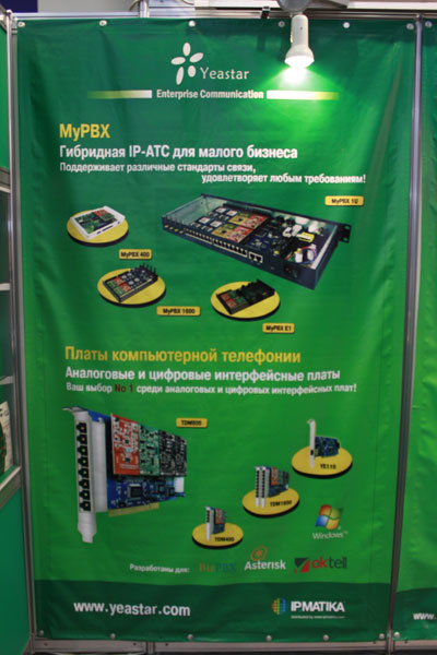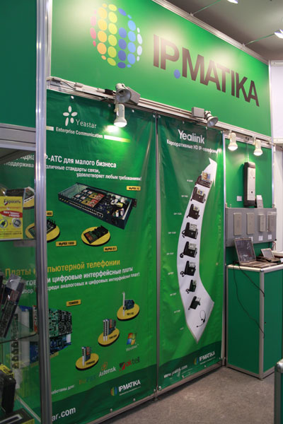 ООО "АйПиМатика" представляло на стенде USB-телефоны, USB-адаптеры, USB-шлюзы и WEB-камеры SkypeMate, мультимедийные телефоны, SIP-телефоны IPMATIKA и Yealink, а также аналоговые и цифровые компьютерные платы для IP-телефонии, IP-АТС и факс-серверы Yeastar.