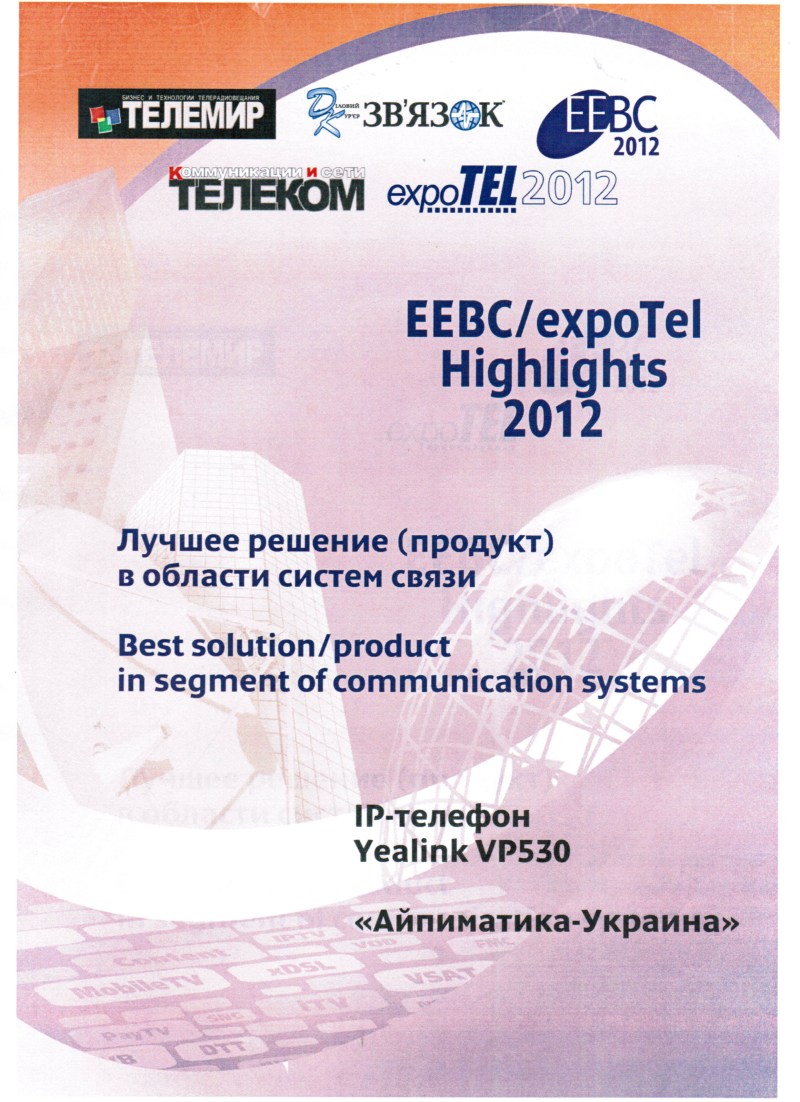 В рамках мероприятия состоялось награждение лучших продуктов и решений, представленных на конкурс. По итогам конкурса компания "АйПиМатика-Украина" стала призером в номинации Лучшее решение (продукт) в области систем связи - IP-телефон Yealink VP530.