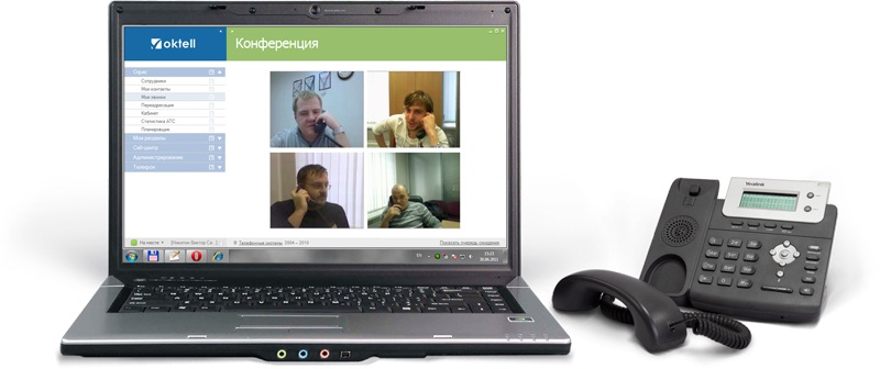 К конференции могут быть подключены как сотрудники внутри офиса, так и находящиеся удаленно по сети интернет, а также абоненты городской или мобильной телефонной сети. Данная возможность расширяет применение АТС-программы Oktell, ведь теперь с помощью подключенного к ней телефона можно не только принимать и совершать звонки, но и участвовать в видеоконференциях и селекторных видеосовещаниях.