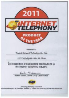 Yealink объявил, что глобальная объединенная медиакомпания TMC назвала телефон Yealink SIP-T38G победителем в номинации «Продукт года 2011 в Интернет-телефонии».