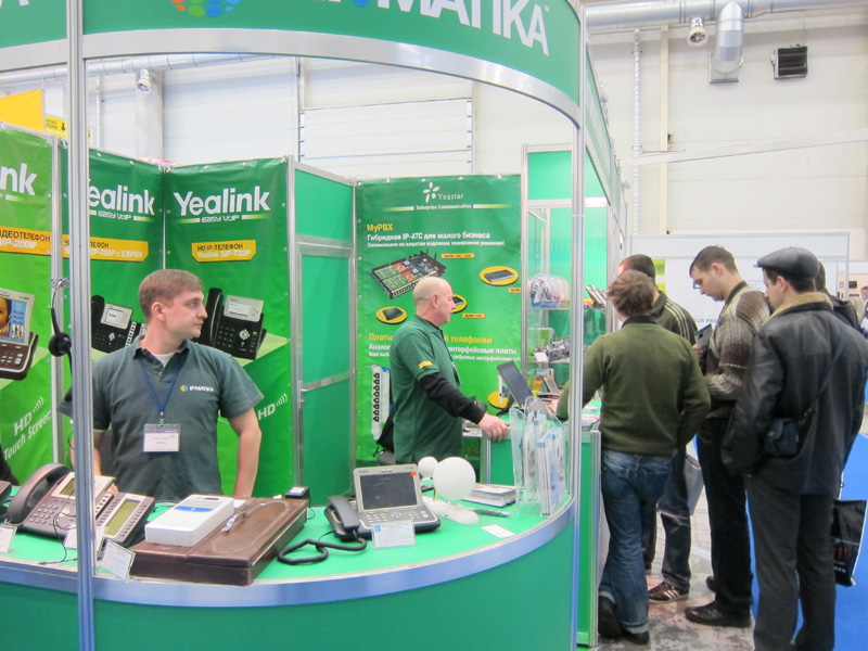 На стенде ООО "АйПиМатика" были представлены USB-телефоны, USB-адаптеры, USB-шлюзы и WEB-камеры SkypeMate, мультимедийные телефоны, SIP-телефоны и SIP-адаптеры IPMATIKA и Yealink, а также аналоговые и цифровые компьютерные платы для IP-телефонии, IP-АТС и факс-серверы Yeastar.