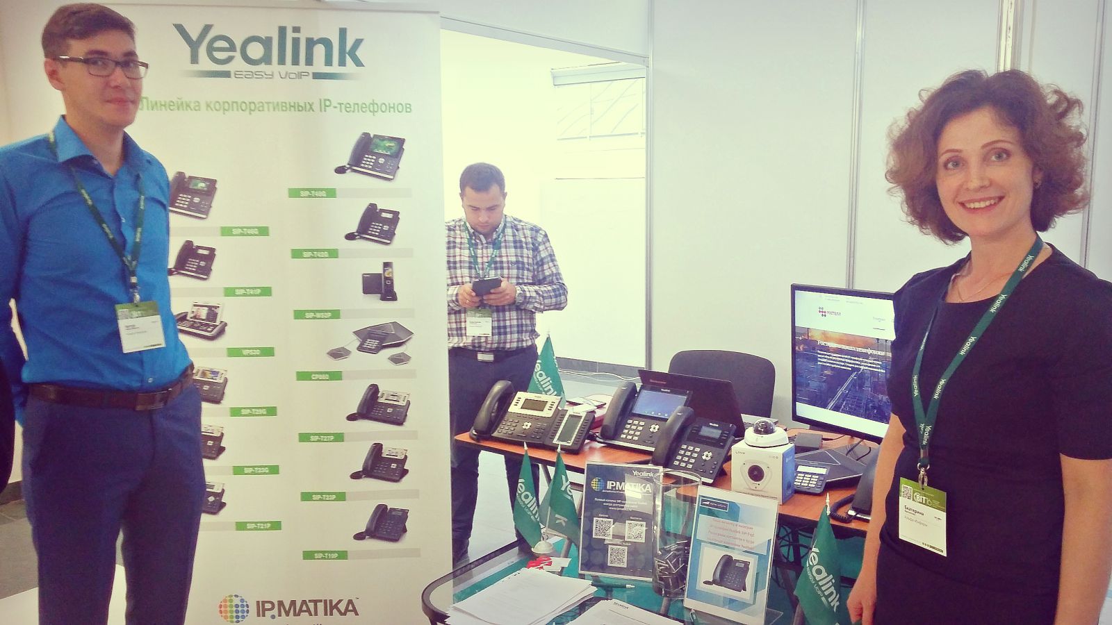 На стенде были представлены различные модели SIP-телефонов Yealink серий Т2 и Т4, а также аудио-конференц-телефон Yealink CP860. Кроме того, была продемонстрирована интеграция персонального терминала видео-конференц-связи Yealink SIP VP-T49G с IP-камерой Milesight с поддержкой SIP.