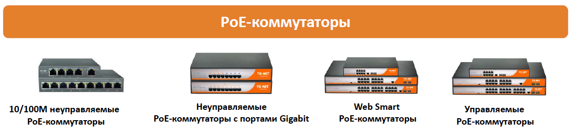 Линейка продуктов включает в себя 10/100М неуправляемые PoE-коммутаторы, неуправляемые PoE-коммутаторы с портами Gigabit, Web Smart PoE-коммутаторы и управляемые PoE-коммутаторы, коммутаторы без поддержки PoE, предназначенные для соединения нескольких сегментов локальной вычислительной сети, а также модули и инжекторы.