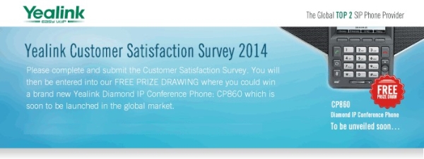 Компания Yealink Network Technology объявила о начале масштабного электронного анкетирования реселлеров Yealink по всему миру. Участникам предлагается заполнить краткую анкету на сайте компании. В качестве благодарности среди участников анкетирования будет разыграна новая модель IP-телефона для конференций Yealink Diamond IP Conference Phone: CP860, которая скоро поступит на рынок. Розыгрыш будет проводиться среди дилеров по всему миру с равными шансами на выигрыш. |