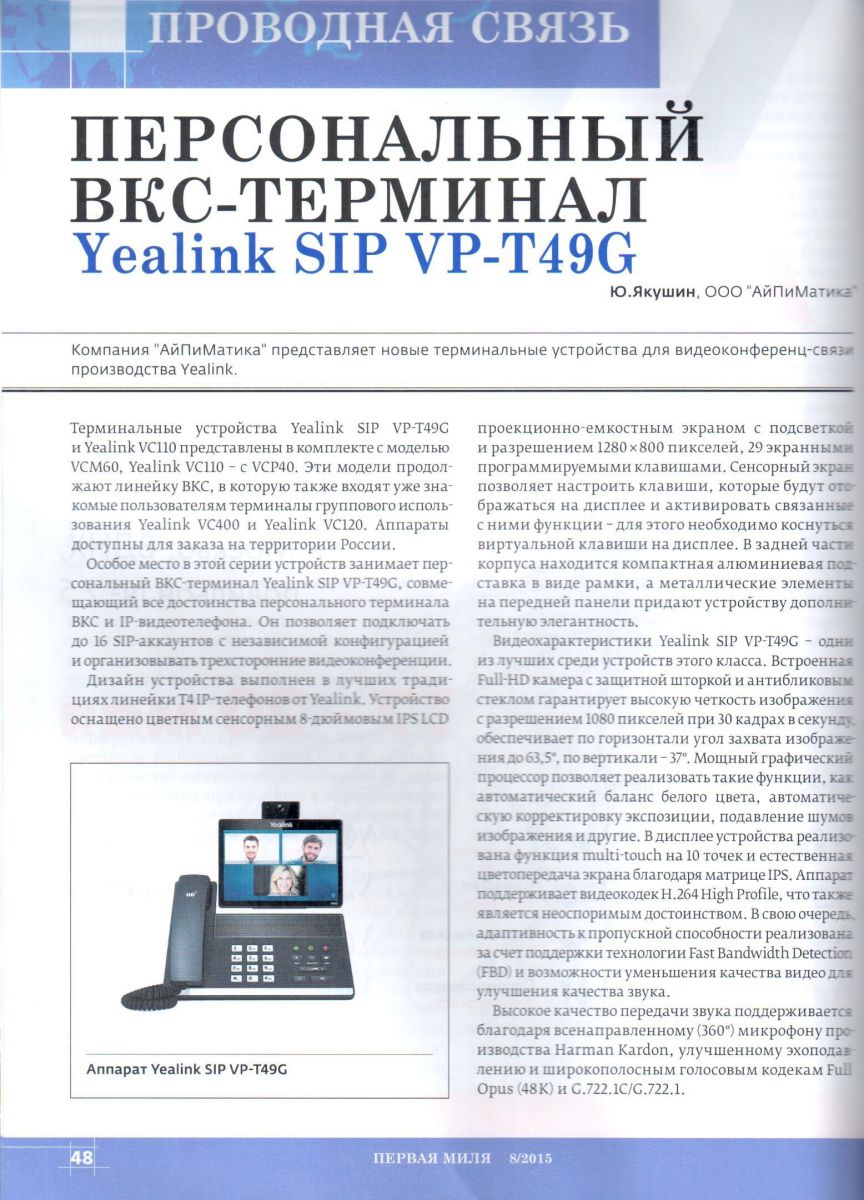 Персональный ВКС-терминал Yealink SIP VP-T49G